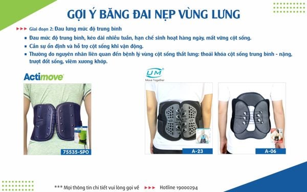 Đau mức độ trung bình, kéo dài nhiều tuần, hạn chế sinh hoạt hàng ngày, mất vững cột sống. Cần sự ổn định và hỗ trợ cột sống khi vận động. Thường do nguyên nhân liên quan đến bệnh lý cột sống thắt lưng: thoái hóa cột sống trung bình - nặng, trượt đốt sống, thoát vị đĩa đệm, gù vẹo cột sống, viêm cột sống.