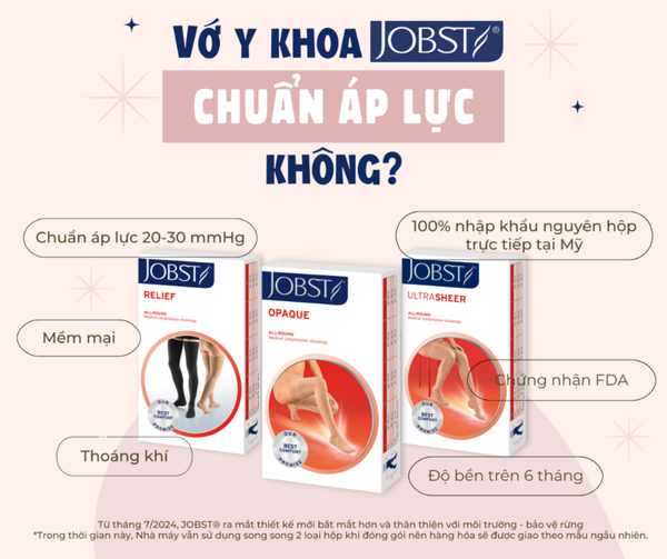Vớ JOBST được sản xuất đúng chuẩn áp lực điều trị 20-30mmHg, mình vải mềm mại và thoáng khí, giảm ngứa và kích ứng da, độ bền trên 6 tháng.