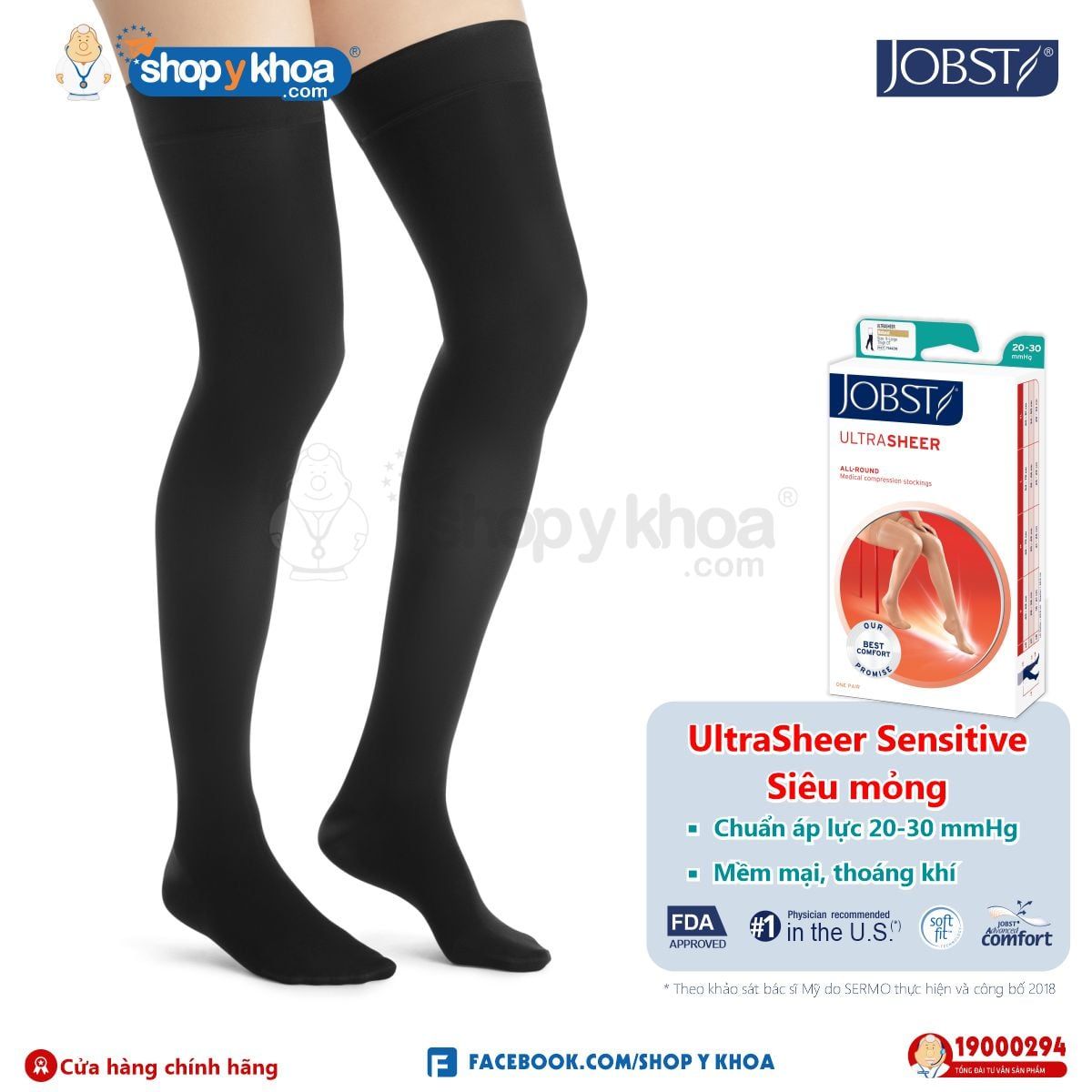 JOBST ULTRASHEER 20-30 THL CT BL. Vớ đùi, sensitive, kín ngón, màu đen