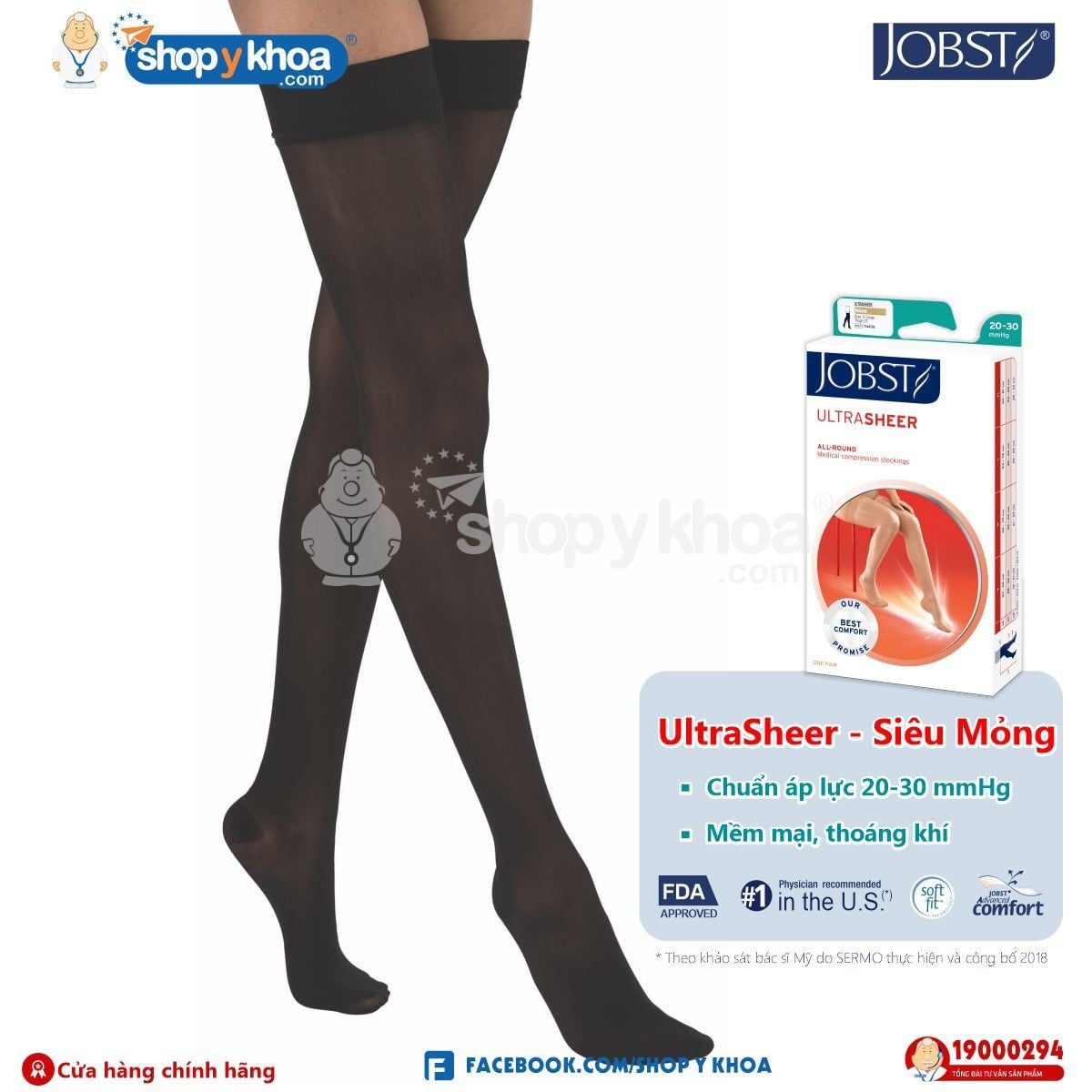 Vớ Y Khoa JOBST UltraSheer Siêu Mỏng - Vớ Đùi, Màu Đen, Kín Ngón, Áp Lực 20-30mmHg, Silicone